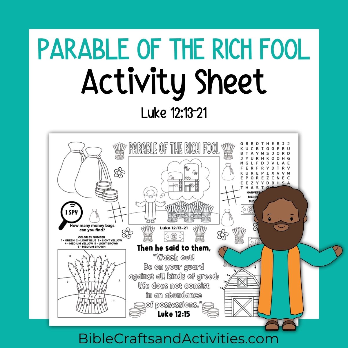 The Find and Count or “I Spy” activity page features illustrations from the Bible story. Images include